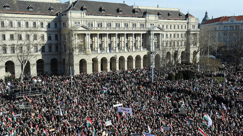 In einer Rede vor seinen Anhängern erinnerte Orban an die Revolution von 1848, in der Ungarn gegen die Vorherrschaft der Habsburger kämpfte und an die der Nationalfeiertag erinnert. Heute gelte wie damals, dass Ungarn "keine Kolonie" sei, sagte er. Dem "Druck und dem Diktat von außen" hätte Ungarn im Winter 2011/2012 nie widerstanden, wenn sich nicht hunderttausende Menschen dagegen aufgelehnt hätten, fügte er mit Blick auf die internationale Kritik an der Arbeit seiner Regierung hinzu.