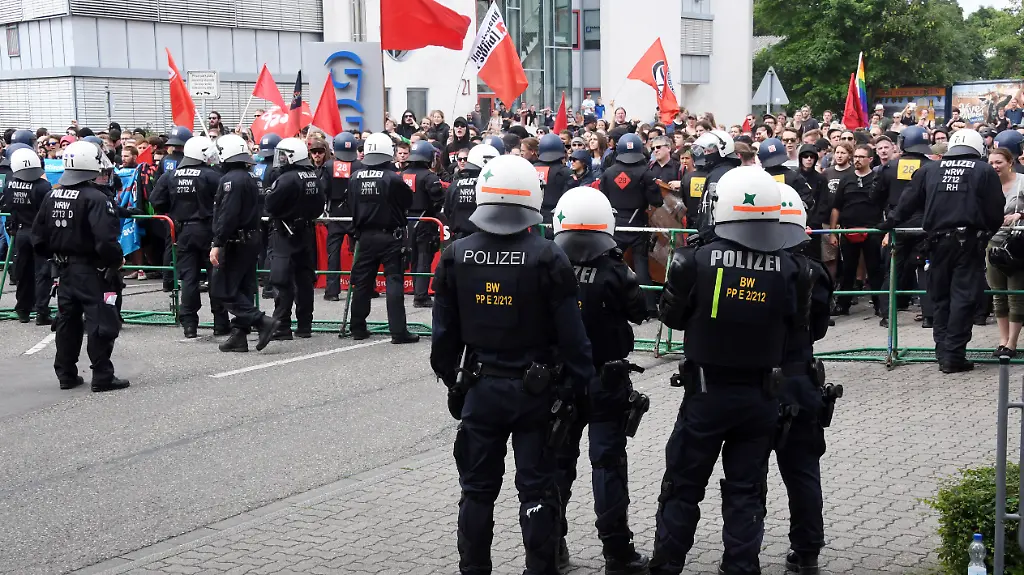 Ein Treffen von Rechtsextremen in Karlsruhe sorgt für enormen Gegenprotest. Für die Polizei vor Ort ist es der größte Einsatz seit Jahren: Sie rückt mit Wasserwerfer und Reiterstaffel aus. Es gibt mehrere Festnahmen.