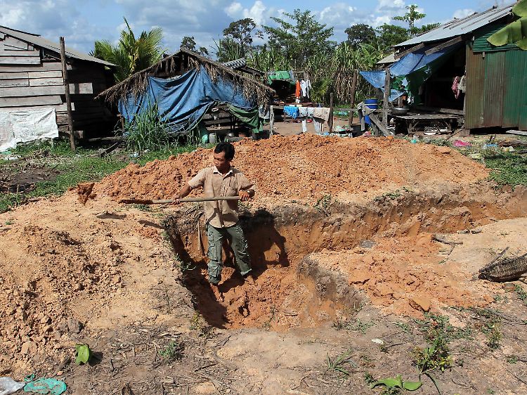Ein Anwohner des umstrittenen Gebiets gräbt einen Bunker, um sich vor den Kämpfen zu schützen.