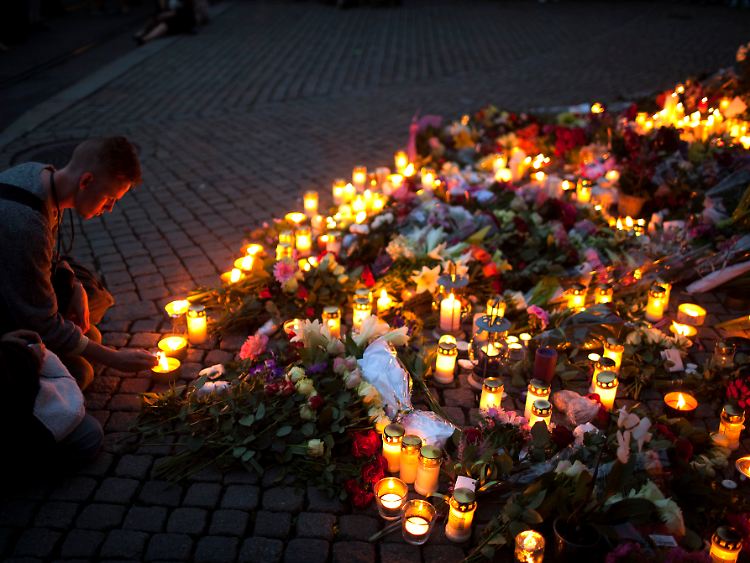 Blumen und Kerzen für die Opfer des Massakers auf der Insel Utøya.