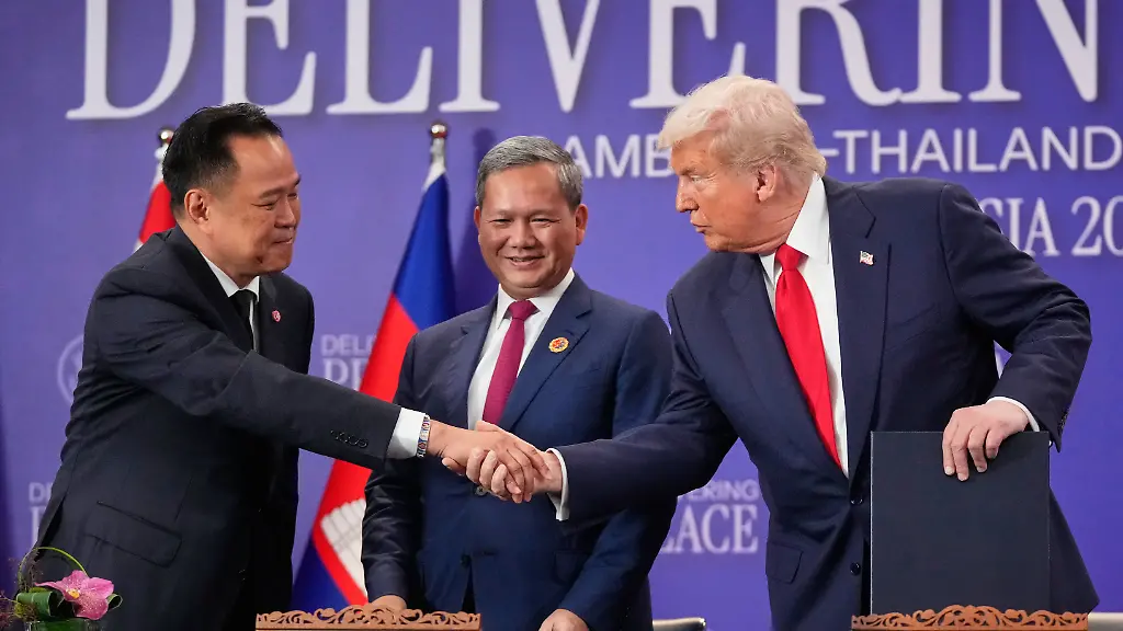 In dem nun unterzeichneten Friedensabkommen, auf das Trump gedrängt hatte, geht es nach Angaben des thailändischen Verteidigungsministeriums unter anderem um den Abzug schwerer Waffen aus dem Grenzgebiet sowie um gemeinsame Minenräumung. Vorausgegangen waren tagelange Verhandlungen zwischen beiden Ländern. Kambodschas Regierungschef Hun Manet sprach von einem "historischen Moment". Der US-Präsident hatte gewarnt, er werde keine Handelsverträge mit den beiden Staaten abschließen, wenn sie die Kämpfe nicht beenden.