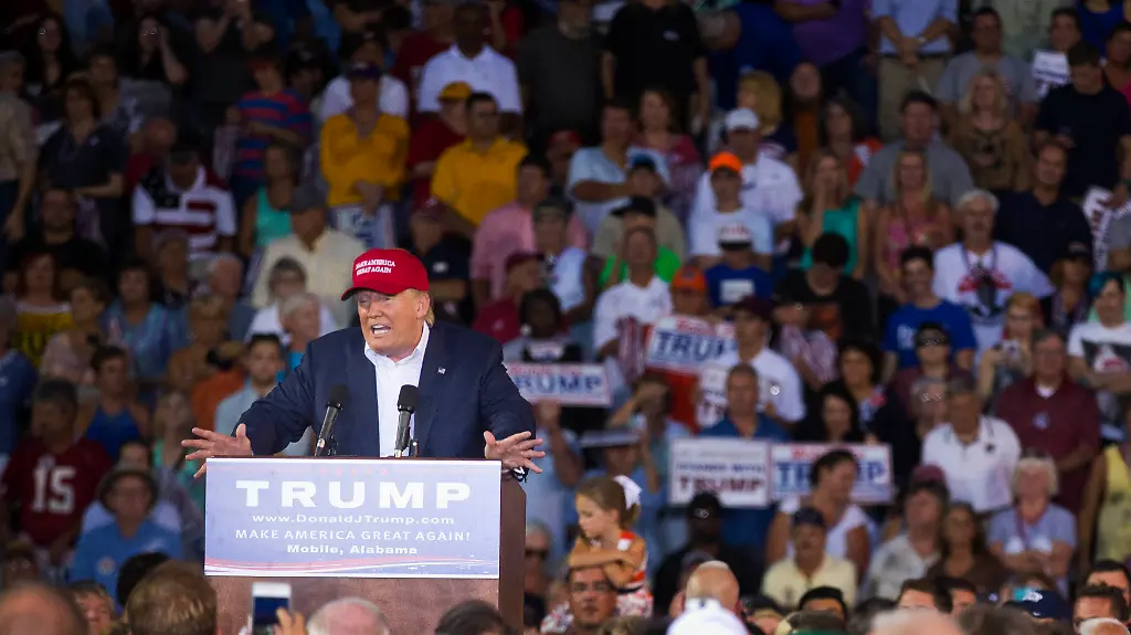 Bei einer Veranstaltung am Freitagabend in einem Footballstadion in Mobile (Alabama) wiederholte Trump seine Angriffe auf die demokratische Präsidentschaftskandidatin Hillary Clinton, aber auch auf seinen republikanischen Mitbewerber Jeb Bush. Die Rede in Mobile war eine der größten Veranstaltungen Trumps seit Beginn seines Wahlkampfs.