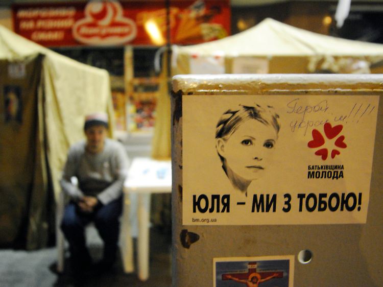 "Julia, wir sind mit dir" - ihre Anhänger campieren auf dem Chreschtschatik-Boulevardzwischen Gerichtsgebäude und Timoschenkos Gefängnis.