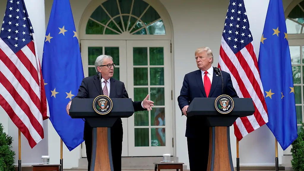 Die ersten Folgen seiner konfrontativen Zölle federt Donald Trump verbal ab. "Ich schätze die Anwesenheit der vielen Senatoren hier (…), Pat Roberts, er liebt die Bauernhöfe, er liebt die Bauern, so wie ich", sagt der US-Präsident im Rosengarten des Weißen Hauses. An dem Rednerpult neben ihm steht EU-Kommissionspräsident Jean-Claude Juncker, vorher höflich desinteressiert, aber plötzlich aufmerksam. Juncker guckt zum Senator aus dem US-Bundesstaat Kansas, schmunzelt leicht und rückt sich seine Brille zurecht. Juncker weiß: Wohl auch dank Roberts wird er der EU eine gute Nachricht überbringen können. Der Handelsstreit mit den USA ist ein ganzes Stück entschärft.