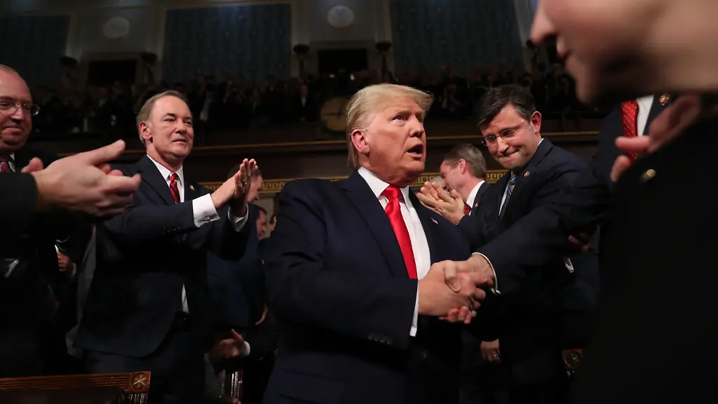 Wiederholter Applaus war Trump während seiner Rede aus dem eigenen Lager sicher, weshalb sich die fast eineinhalbstündige Rede in die Länge zog. Die US-Wirtschaft befindet sich nach Ansicht Trumps in einem Aufschwung, der seinesgleichen sucht. Die Zeit des amerikanischen Abstiegs sei vorbei, der Wohlstand wachse und die Arbeitslosigkeit sinke, sagte Trump. Seine Regierung werde Amerika zur "wohlhabendsten Gesellschaft" der Welt machen, versprach er. Der US-Wirtschaft gehe es "so gut wie nie zuvor". Die US-Wirtschaft wuchs 2019 um 2,3 Prozent. Das war die niedrigste Wachstumsrate seit 2016. Die US-Arbeitslosenquote ist mit 3,5 Prozent so niedrig wie seit rund 50 Jahren nicht mehr.