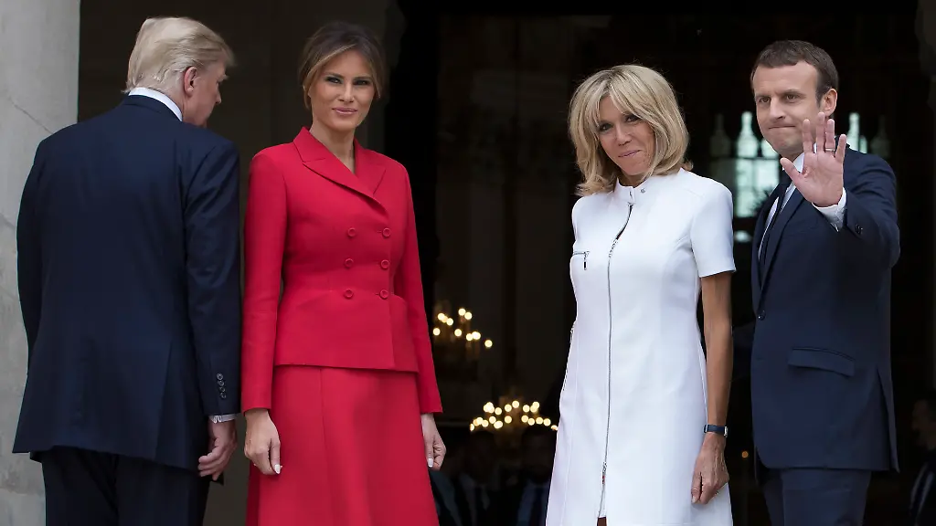Anschließend drehte sich Trump zu Macron um und bekräftigte noch einmal - von Mann zu Mann - wie wohlgeformt doch die Frau seines Amtskollegen sei. "Schön ist das", schloss Trump seine Ausführungen - jetzt wieder an Brigitte Macron gewandt. Ihre Mimik ist nicht zu erkennen, da sie mit dem Rücken zur Kamera neben Trumps Frau Melania steht.