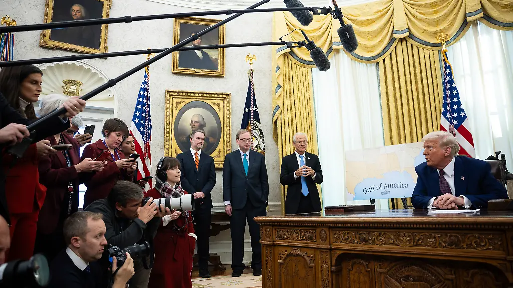 Per Dekret macht Trump auf dem Golf von Mexiko den Golf von Amerika. Weil die Nachrichtenagentur AP den neuen Namen nicht verwendet, schließt der US-Präsident sie jetzt dauerhaft aus dem Oval Office und der Präsidentenmaschine aus. Den Verweis auf die Pressefreiheit lässt das Weiße Haus nicht gelten.