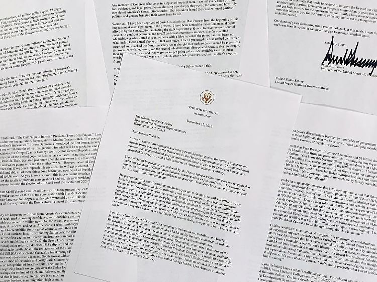 Die Ankündigung des Impeachment-Votums erzürnt US-Präsident Trump so sehr, dass er nicht wie sonst auf Twitter wütet, sondern einen sechsseitigen Brief schreibt - als Vermächtnis für die Geschichtsbücher. Für Adressatin Pelosi ist das "wirklich krank".