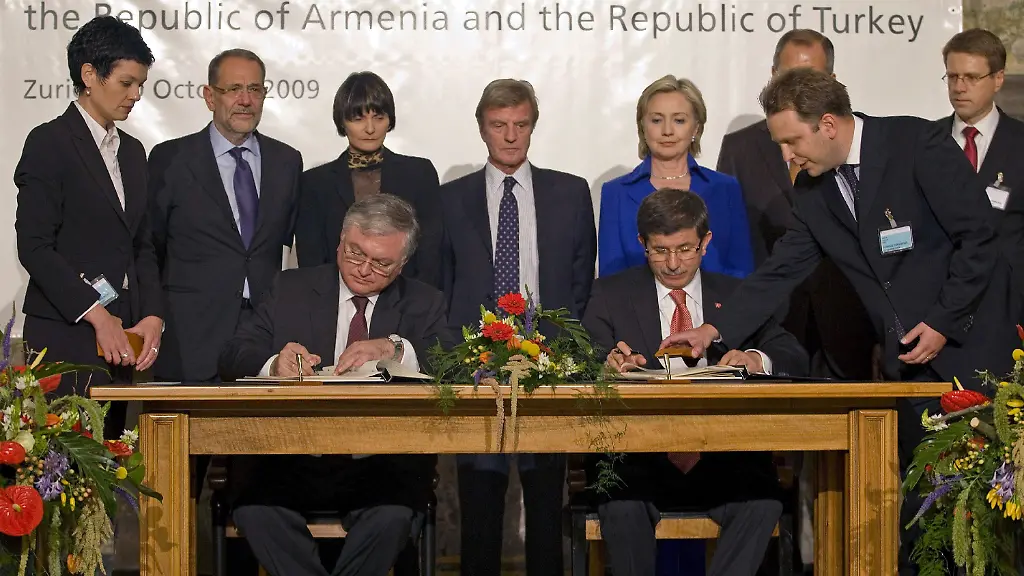 Die Außenminister beider Länder unterzeichneten das Abkommen in Zürich. Die Annäherung war unter Vermittlung der Schweiz und unter diplomatischem Druck der USA und der EU zustande gekommen. Die Türkei bemüht sich um eine Aufnahme in die Europäische Union. Bei der Unterzeichnung war auch US-Außenministerin Hillary Clinton anwesend.