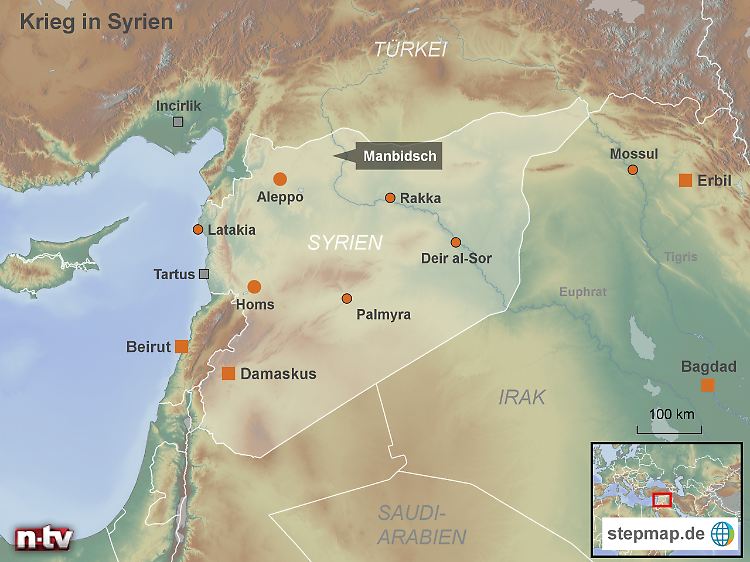 Gefechte am Euphrat: Die Stadt Manbidsch liegt im Norden Syriens im Bezirk Aleppo.