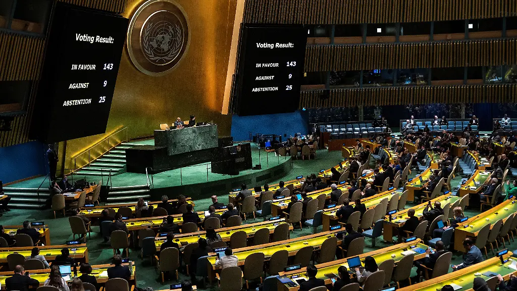 In einer lediglich symbolischen Abstimmung hat die UN-Vollversammlung mit großer Mehrheit für eine Aufnahme der Palästinenser in die Vereinten Nationen gestimmt. 143 Staaten stimmten für eine Resolution, derzufolge die Palästinenser in die UNO aufgenommen werden und ihnen zusätzliche Rechte neben ihrem bisherigen Beobachterstatus gewährt werden sollen. Neun Staaten stimmten dagegen, 25 Länder - darunter Deutschland - enthielten sich. Israels engster Verbündeter, die USA, lehnten den Antrag ab.