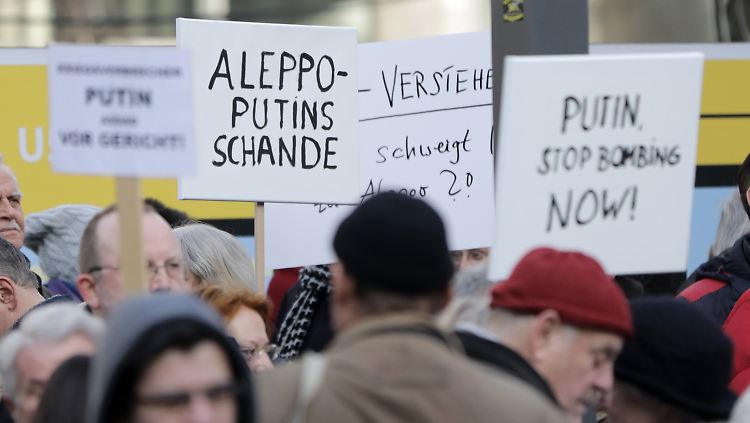 Derweil protestierten in Berlin mehrere Hundert Menschen vor der russischen Botschaft gegen die militärische Unterstützung des syrischen Präsidenten Baschar al-Assad. Mit Plakaten wie "Putin stop bombing now" oder "Aleppo - Putins Schande" protestierten Kundgebungsteilnehmer gegen die Syrien-Politik des russischen Präsidenten Wladimir Putin.