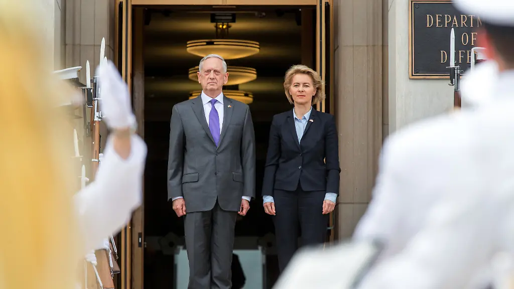 Bundesverteidigungsministerin Ursula von der Leyen ist mit ihrem US-Kollegen Jim Mattis im Pentagon zusammengetroffen. Die Ministerin wurde mit militärischem Zeremoniell empfangen, eine Kapelle spielte die Nationalhymnen beider Länder. Bei dem anschließenden Gespräch der Minister sollte es unter anderem um die Beteiligungen der Bundeswehr an internationalen Einsätzen gehen.