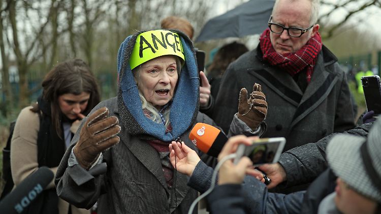 Auch die Modeschöpferin Vivienne Westwood demonstrierte vor dem Gericht.