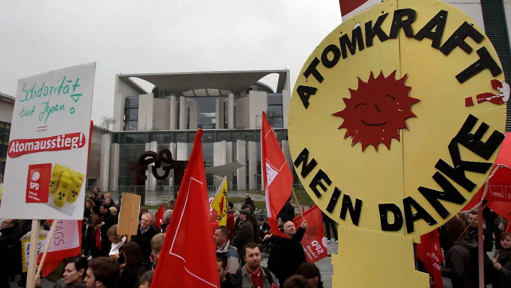 Vor dem Bundeskanzleramt in Berlin demonstrierten mehrere hundert Menschen gegen die Nutzung der Kernenergie, unter ihnen der SPD-Vorsitzende Sigmar Gabriel, die Grünen-Fraktionsvorsitzenden Renate Künast und Jürgen Trittin sowie Linksfraktionschef Gregor Gysi, Berlins Regierender Bürgermeister Klaus Wowereit und der DGB-Vorsitzende Michael Sommer.