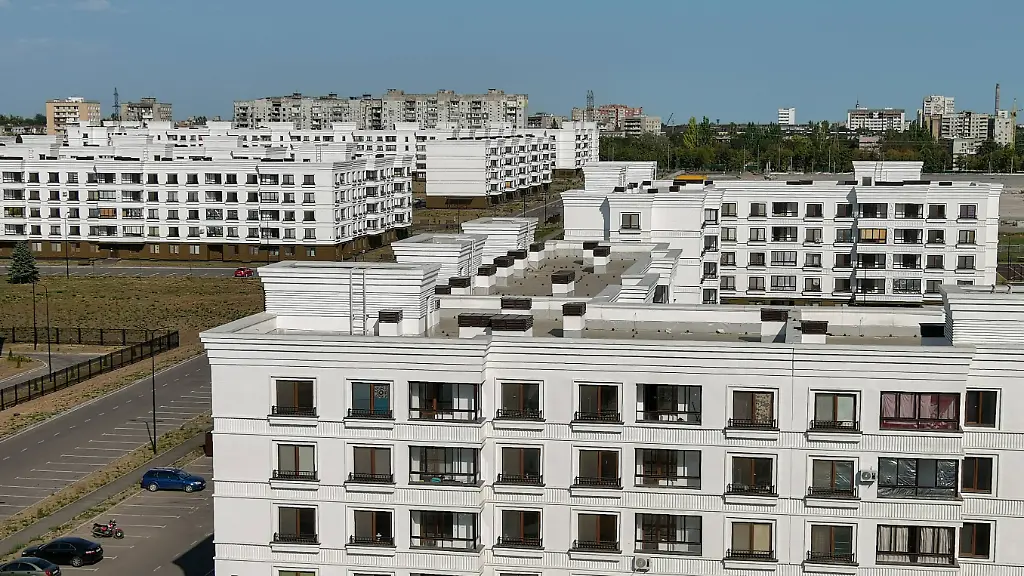Auf von der russischen Nachrichtenagentur TASS veröffentlichten Fotos vom Newski-Viertel wurde zuletzt ein großer Neubaukomplex in Mariupol gezeigt. Daneben ein neu errichtetes Stadion sowie Tennis- und Basketballplätze.