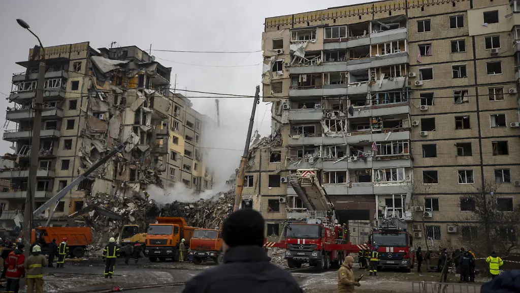 Die Ukraine ist nach eigenen Angaben wehrlos gegen den von Russland eingesetzten Marschflugkörper vom Typ KH-22. Das Luftwaffenkommando schreibt auf seiner Facebookseite, die ukrainische Armee verfüge nicht über die Feuerkraft, um diese Lenkwaffe abzuschießen, die noch in der Sowjetunion entwickelt wurde. Am Samstag habe Russland fünf KH-22-Lenkflugkörper gegen die Ukraine abgefeuert. Einer von ihnen schlug dem Militär zufolge in dem Hochhaus in Dnipro ein, wo sich die Zahl der Todesopfer inzwischen auf 21 erhöht hat. Dutzende Menschen sind verletzt, weitere Dutzende werden noch vermisst.