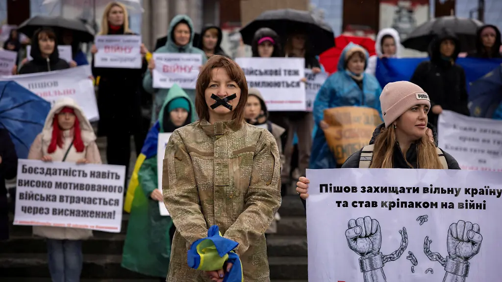 "Zeit, die Leute auszuwechseln"Ukrainerinnen protestieren gegen unbefristeten Kriegsdienst ihrer Männer