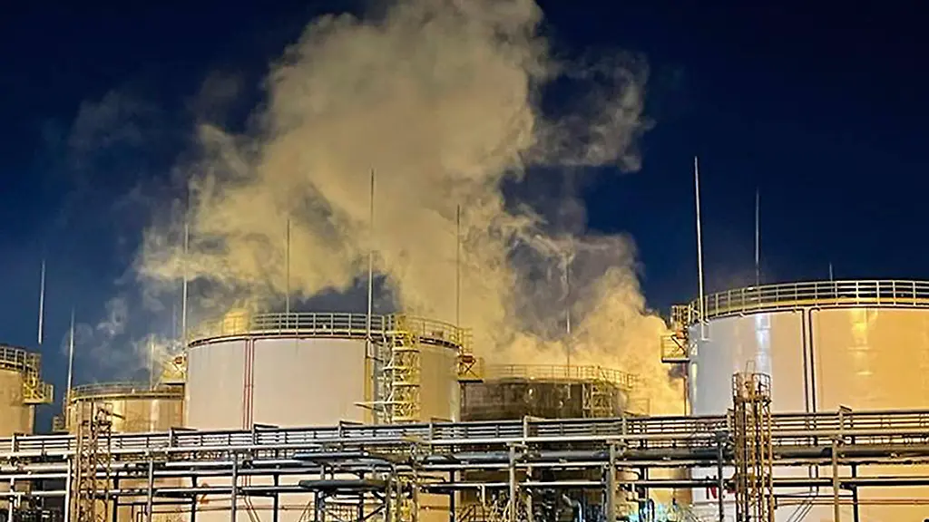 Brand auf 2000 QuadratmeternUkrainische Drohnen attackieren Erdöl-Tanks in Krasnodar