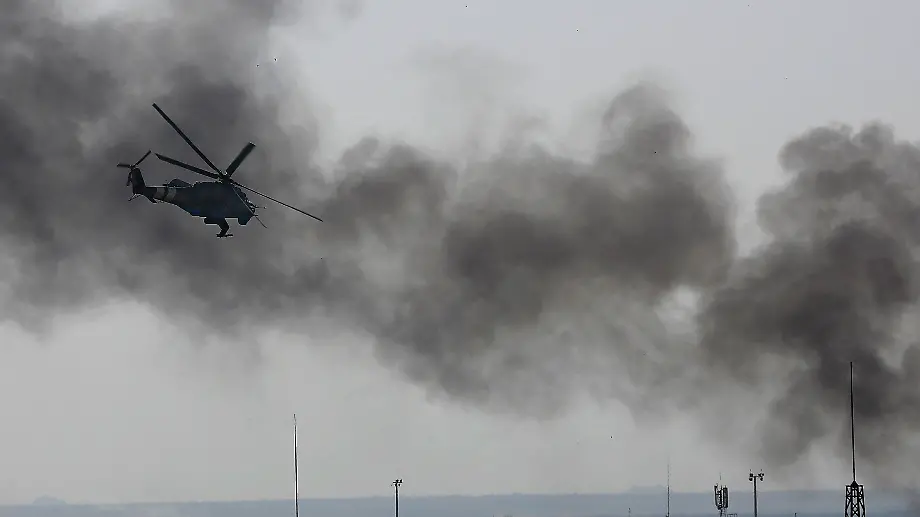An dem Flughafen waren eine Explosion und heftige Schusswechsel zu hören. Über einem Gebäude stand eine schwarze Rauchwolke. Je zwei Kampfjets der Typen Su-25 und Mig-29 hätten die "Terroristen" beschossen, teilte der Sprecher des Militäreinsatzes bei Facebook mit. Nun sollten Bodentruppen das Gelände "reinigen". Die moskautreuen Kräfte seien in Panik, behauptete der Sprecher. Örtliche Medien berichteten von Schusswechseln und vom Einsatz großkalibriger Waffen.