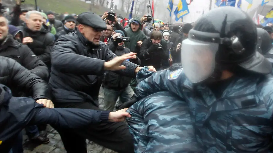 Zu der Demonstration waren zu Beginn zwischen fünf- und zehntausend Teilnehmer gekommen. Ein massives Polizeiaufgebot sicherte die Protestkundgebung auf dem Maidan, dem Unabhängigkeitsplatz, der seit der prowestlichen Orangenen Revolution 2004 berühmt ist. Die Regierungskritiker riefen "Revolution" und lieferten sich nach Agenturberichten vereinzelt Handgemenge mit der Bereitschaftspolizei.