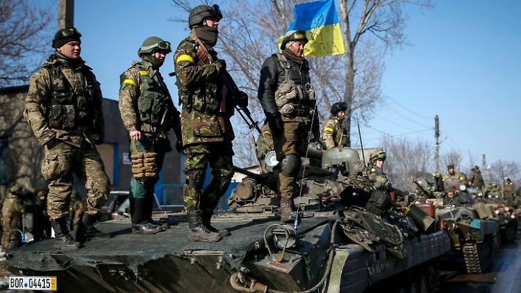 In der ukrainischen Stadt Debalzewe stehen sich Separatisten und ukrainische Soldaten gegenüber. Die Truppen Kiews sind mit Panzern im Einsatz. Einer trägt ein deutsches Kennzeichen.