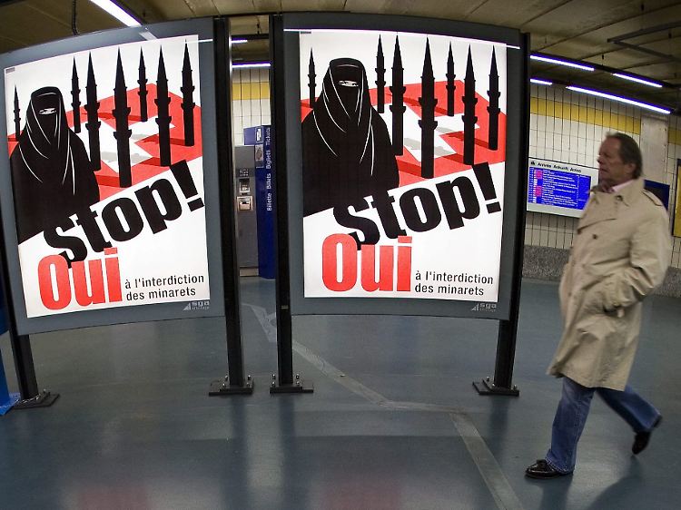 Mit einer verschleierten Frau vor schwarzen Minaretten hatten die Islam-Gegner 2009 Stimmung gemacht.