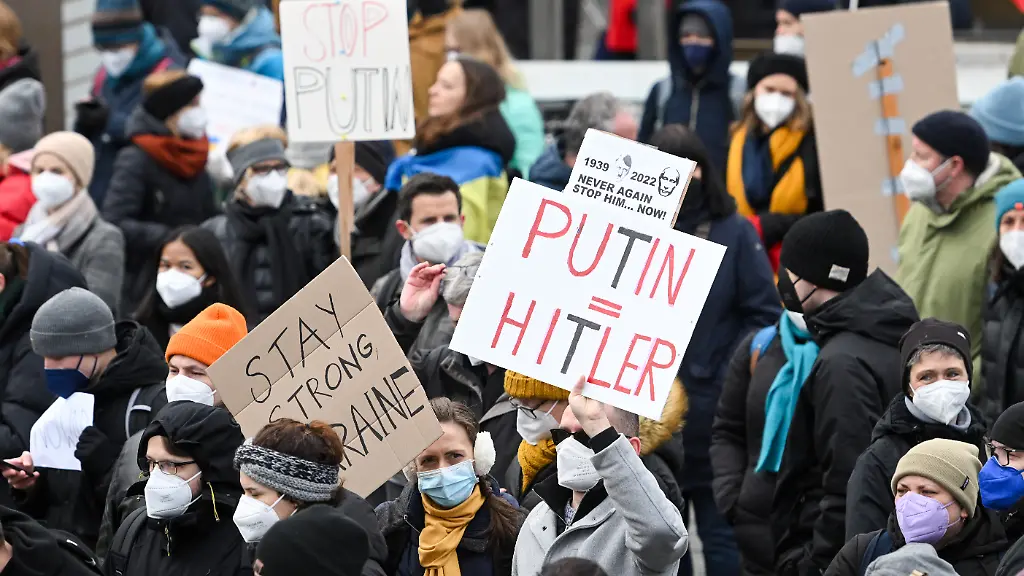Es passiert nicht oft, dass das Drinnen und das Draußen im Bundestag derart eng beieinander sind. "Dieser Krieg ist Putins Krieg", stellt Bundeskanzler Olaf Scholz klar - nicht der des russischen Volkes, das in dieser Frage genauso wenig Mitsprache hat wie in anderen. Diese Sichtweise deckt sich mit der der Demonstranten: "Fick dich, Putin", Vergleiche mit Hitler und andere Verwünschungen schleudern sie dem russischen Autokraten von Bannern und Schildern entgegen, daneben die ukrainischen Farben und der Slogan "Kein Krieg!".