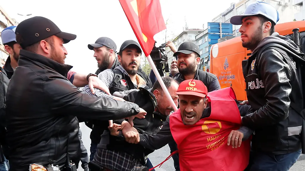 Im Stadtteil Mecediyeköy gab es nach Angaben der Nachrichtenagentur DHA Auseinandersetzungen zwischen der Polizei und Demonstranten, die zum zentralen Taksim-Platz laufen wollten. Aktivisten entrollten Banner mit der Aufschrift "Lang lebe der 1. Mai. Nein zum Diktator". Die Polizei habe Tränengas und Gummigeschosse eingesetzt.