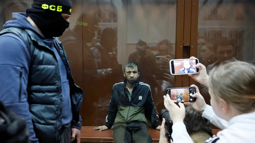 Gezeichnet von schweren Gesichtsverletzungen sind die vier mutmaßlichen Attentäter des jüngsten Terroranschlags nahe Moskau dem Haftrichter vorgeführt worden. Die Angeklagten wurden am Abend von vermummten Sicherheitskräften ins Basmanny-Gericht in der russischen Hauptstadt gebracht und mit deutlich sichtbaren Blutergüssen, Schwellungen, Schürf- und Platzwunden in Glaskäfigen platziert. Einer von ihnen war offensichtlich nicht mehr in der Lage zu laufen und lag mit geschlossenen Augen festgeschnallt in einem Krankenstuhl. Ein anderer hatte einen wenig fachkundig wirkenden Verband am rechten Ohr.