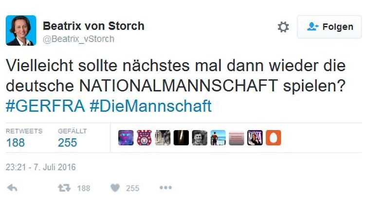 AfD-Frau kennt Grund für EM-Aus Von Storch twittert sich ins Abseits