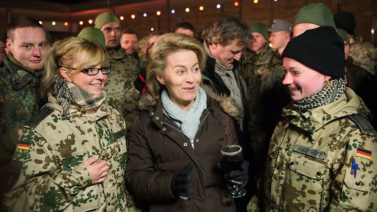 Mit Punsch und Parka bei der Truppe Von der Leyen zeigt sich betont zivil
