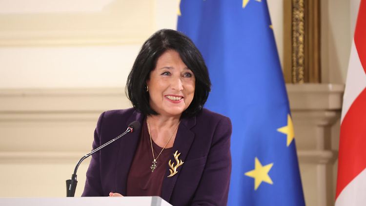 "Wir haben quasi ein Referendum über die Wahl zwischen Europa oder der Rückkehr zu einer unsicheren russischen Vergangenheit", sagt die pro-europäische Präsidentin Salome Surabischwili.