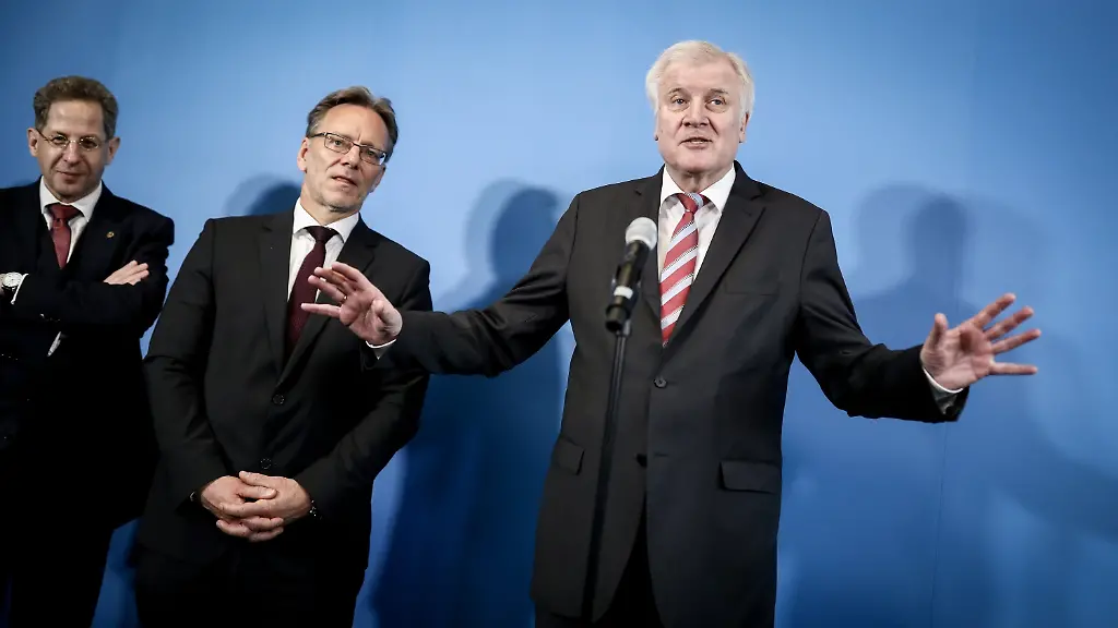 9 Uhr, Kasernengelände am Treptower Park in Berlin. Die Chefs des Bundeskriminalamts und des Bundesverfassungsschutzes, Holger Münch und Hans-Georg Maaßen, sowie ihre Entourage an Mitarbeitern in schwarzen Anzügen und Kostümen warten. Seehofer kommt nicht. Fernsehmoderatoren fangen an zu improvisieren, um Live-Aufsager zu füllen. Einer sagt seinen Zuschauern, dass der CSU-Politiker womöglich auch ein paar Worte für die Presse übrig hätte, wenn er denn komme.