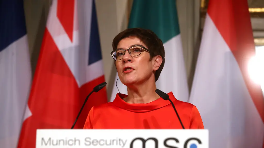 In München geht die CDU-Politikerin auch auf das Angebot von Macron ein, mit Europa einen Dialog über einen Nuklearschirm zu führen. Gegen einen Dialog spreche nie etwas, so Kramp-Karrenbauer vage. Es sei allerdings die Frage, was die konkreten Angebote seien. Schließlich wolle Frankreich auch nicht sein Atomwaffenarsenal unter eine europäische Kommandostruktur stellen. Letztlich macht Kramp-Karrenbauer unmissverständlich klar: Der Schutz der Staaten in Europa werde im Nato-Bündnis durch den Atomschirm der USA gewährleistet.