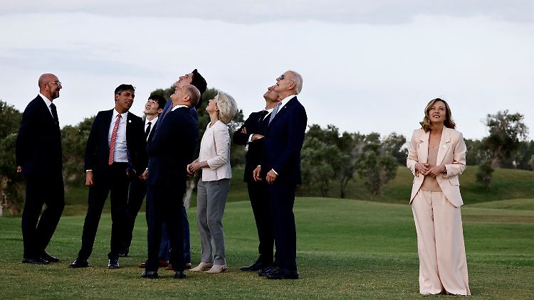 Doch Biden wendet sich von der Gruppe ab und entfernt sich langsam einige Schritte, bis ihn Gastgeberin Giorgia Meloni am Arm greift und wieder zu den anderen führt. Dort macht dann ein Armeevertreter einige Ausführungen. Aber beobachtete der US-Präsident etwas anderes als die Vertreter der restlichen G7-Staaten oder ist er schlichtweg orientierungslos?