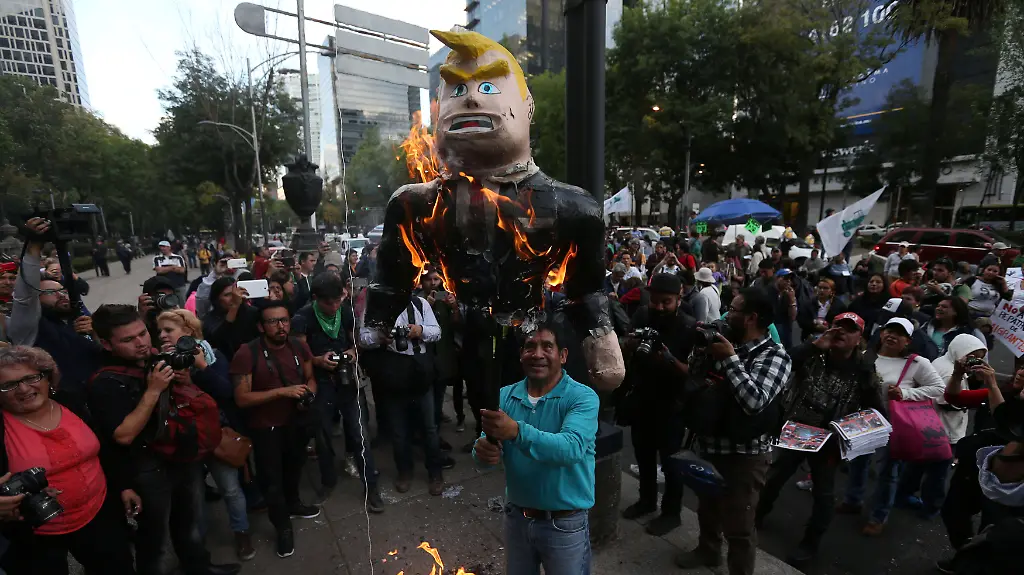 Am Rande steckten Demonstranten eine US-Flagge mit Hakenkreuzen statt Sternen und eine Trump-Puppen in Brand. Trump hatte Mexikaner im Wahlkampf als Vergewaltiger und Drogenhändler verunglimpft. Er kündigte zudem an, an der Grenze zu Mexiko eine Mauer zu errichten, um die illegale Einwanderung zu stoppen. Außerdem will er Millionen Migranten ohne Papiere abschieben. In den USA leben rund elf Millionen Mexikaner, rund die Hälfte von ihnen ohne Aufenthaltsberechtigung. Ihre Überweisungen sind ein wichtiger Devisenbringer für Mexiko.