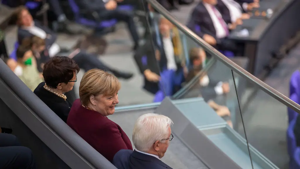 In ihrer Rede verweist Bas darauf, dass sie in 20 Legislaturperioden erst die dritte Frau an der Spitze des Parlaments sei. "Ruhmreich ist das nicht", sagt sie, erinnert an Annemarie Renger, die sich das Amt 1972 erstreiten musste. Die zweite Frau in diesem Amt, Rita Süßmuth, hört Bärbel Bas von der Ehrentribüne aus zu. Neben ihr sitzt Noch-Kanzlerin Angela Merkel, die sich auf den Zuschauerrängen recht wohl zu fühlen scheint und immer mal links mit Süßmuth oder an ihrer rechten Seite mit Bundespräsident Frank-Walter Steinmeier plaudert.