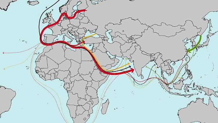 Typische Routen von Russlands Schattenflotte.