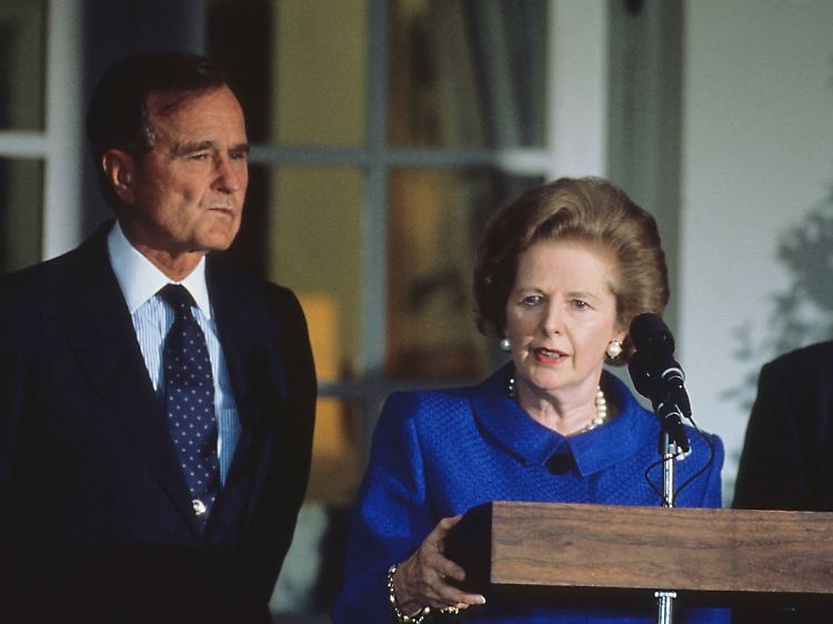 Einheitsbefürworter und -gegnerin: George Bush und Margaret Thatcher.