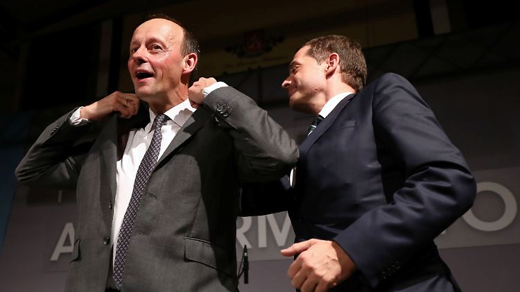 Immerhin, so eine Art Lob hat er sogar für die Kanzlerin, der er doch seit Langem in tiefer Abneigung verbunden ist. Dass es diesem Land so gut gehe, "verdanken wir auch Angela Merkel", sagt er. Vielleicht ahnt er, dass eine reine Miesmacherei der vergangenen Jahre nicht gerade hilft, wenn er auch Unterstützer in der Mitte der CDU gewinnen will. Das Aber folgt sogleich: Nun sei es Zeit für Korrekturen. "Die Alternative sei 'Weiter so' oder Aufbruch und Erneuerung. Wir brauchen jetzt Aufbruch und Erneuerung." Das johlende Publikum versteht natürlich, wer der Erneuerer ist: Der Mann der kernigen Sprüche, der vor etlichen Jahren mit Debatten um die deutsche Leitkultur und der Bierdeckel-Steuererklärung Aufsehen erregte, bevor er sich für Jahre in die Privatwirtschaft verabschiedete.