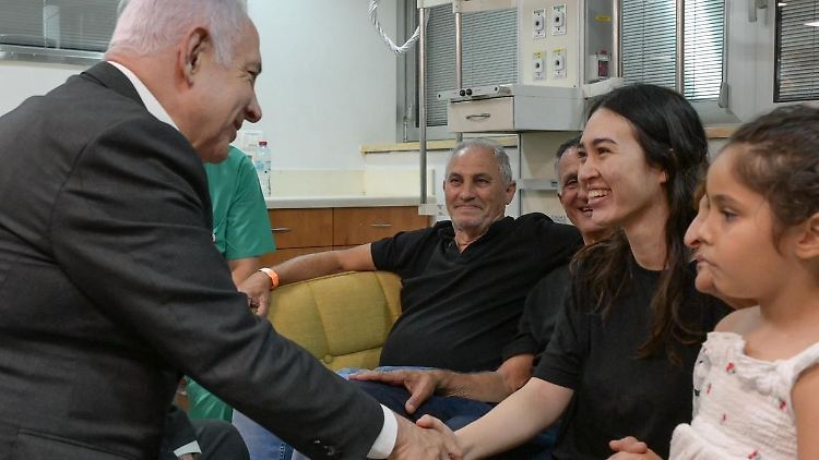 Nach ihrer Rückkehr nach Israel kam Argamani zunächst zur Untersuchung in ein Krankenhaus. Auf einer von seinem Büro veröffentlichten Aufnahme ist Israels Regierungschef Benjamin Netanjahu zu sehen, wie er die junge Frau in der Klinik besucht und ihre Hand hält. Zuvor hatte er sie bereits angerufen. Sie freue sich, nach so langer Zeit wieder Hebräisch zu sprechen, sagte die Israelin Medien zufolge in dem Gespräch.