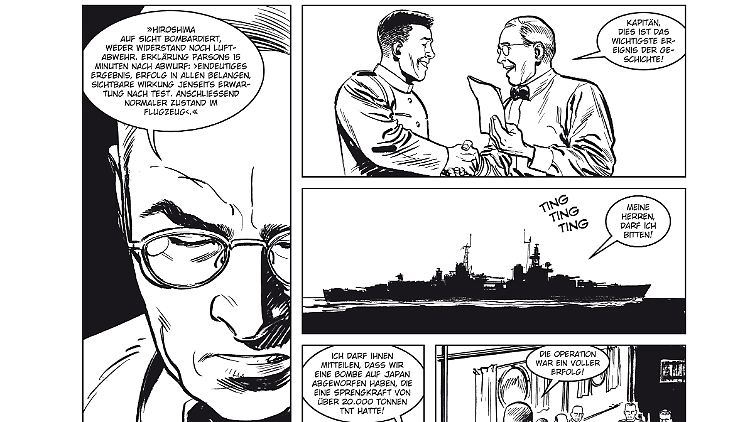 Denn es gab andere, die Bau und Abwurf der Bombe vehement vorantrieben, darunter General Leslie R. Groves, der Leiter des Manhattan-Projekts. Sein kompromissloser Einsatz gilt heute als mitentscheidend dafür, dass die Atombombe relativ schnell fertig wurde. Später rechtfertigte er den Abwurf damit, unzähligen US-Soldaten im Krieg gegen Japan das Leben gerettet zu haben - ein bis heute umstrittenes Argument. Der Comic stellt den Militär als egozentrisch und herrisch dar. Aus seinen Auseinandersetzungen etwa mit Szilárd, den Groves wegen dessen zunehmend pazifistischer Einstellung überwachen ließ, zieht das Buch vor allem in der zweiten Hälfte einen Gutteil seiner Dramatik.