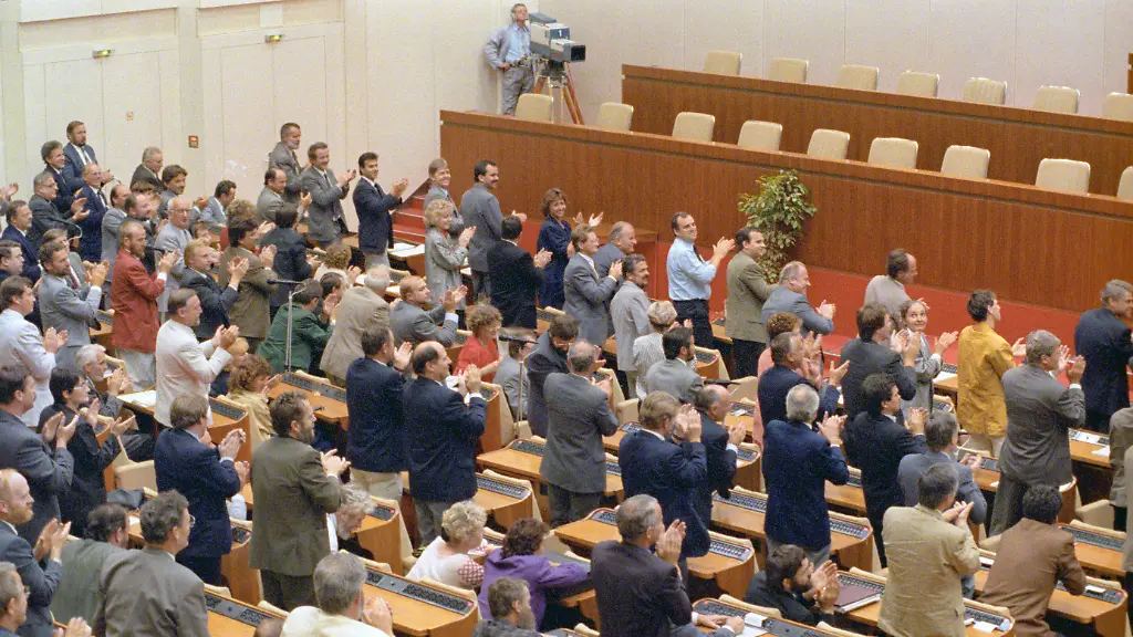 Um die Frage Beitritt oder gleichberechtigte Vereinigung ging es in jener legendären Nachtsitzung der Volkskammer nicht mehr. Nachdem der Beifall der Abgeordneten abgeflaut war, konnte die Volkskammerpräsidentin fortfahren: "Mit Nein haben 62 Abgeordnete gestimmt, und sieben Abgeordnete haben sich der Stimme enthalten." Geschlossen mit Ja gestimmt hatten die Fraktion von CDU und Demokratischem Aufbruch sowie FDP und DSU. Aus der SPD kamen zwei Nein-Stimmen und zwei Enthaltungen. Die PDS lehnte den Beitritt ab. Die gemeinsame Fraktion von Bündnis 90 und Grünen votierte acht Mal mit Nein, fünf Mal mit Enthaltung und zwei Mal mit Ja.