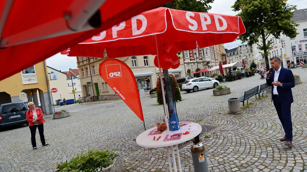 Hier, auf dem Marktplatz in Limbach-Oberfrohna, im Umland von Chemnitz, ist das nicht anders. Dulig spricht davon, die Wirtschaft weiter zu stärken, zukunftsfit zu machen. Er wolle den öffentlichen Nahverkehr in der Region verbessern. Er wolle die Grundrente ohne Bedürftigkeitsprüfung. Die Lebensleistung der Menschen müsse anerkannt werden. Bei der Gemeinderatswahl in diesem Jahr kam die SPD in dem Ort auf 3,7 Prozent. Bei der Europawahl wählten rund neun Prozent in dem Landkreis die Partei. Immerhin neun Prozent.