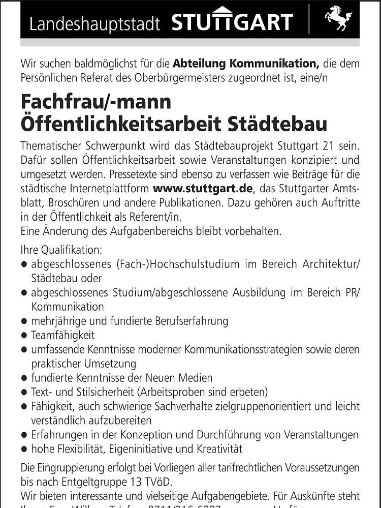 Stuttgart 21 sucht PR-Profi Wir bewerben uns!