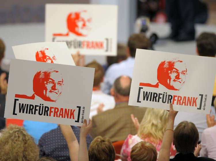 Zugleich betonte Steinmeier seine Verwurzelung in einfachen Verhältnissen und gab sich volksnah: Er sei nicht "zwischen Klavier und Bücherregalen" aufgewachsen. "Ich nehme die Sorgen der Menschen ernst. Ich weiß doch, verflucht noch mal, genau, worum es geht." Nach seiner Rede wurde Steinmeier vom Parteitag mehr als zehn Minuten lang gefeiert.