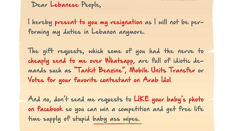 Sie haben kurz vor Weihnachten einen Brief verfasst, vorgeblich vom Weihnachtsmann an das libanesische Volk. Der Weihnachtsmann verkündet darin, dass er es leid ist, Wunschzettel nur noch via Whatsapp zu erhalten und dass die Libanesen sich nur noch völlig bescheuerte Dinge wünschen wie einen Like für ihr Babyfoto bei Facebook. Am Ende schreibt er: "Ihr seid gut ohne Präsident klargekommen, also könnt ihr auch ohne Weihnachtsmann klarkommen." Wie kam das an?