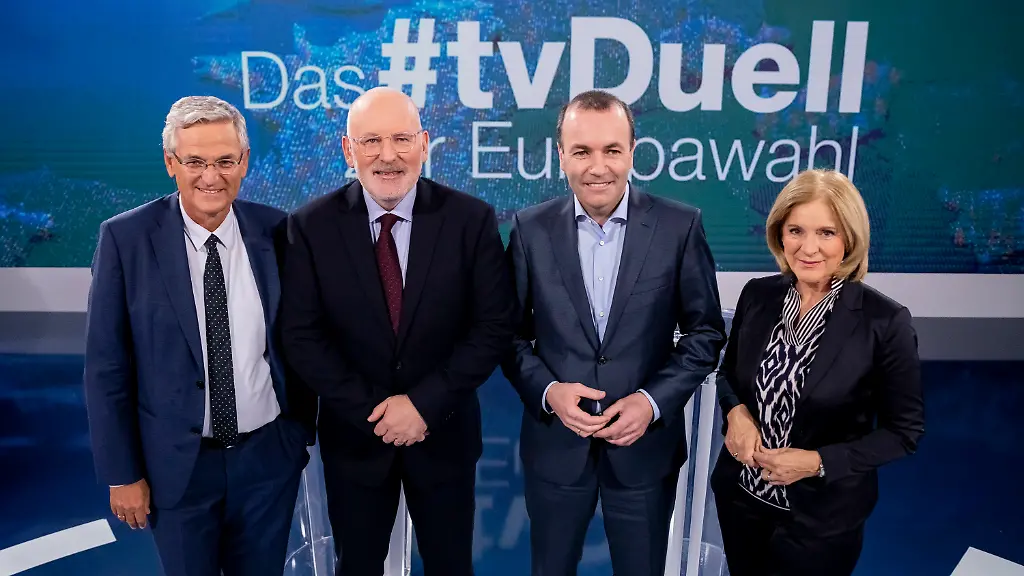 Das TV-Duell bestritten Weber und Timmermans im Studio mit Publikum auf Fragen von ZDF-Chefredakteur Peter Frey und ORF-Chefredakteurin Ingrid Thurnher, denn der österreichische Sender strahlte die Sendung ebenfalls aus. Das Hauptproblem: Es war das dritte Aufeinandertreffen in zehn Tagen der Kandidaten der beiden größten europäischen Parteienfamilien, die sich beide Hoffnung auf die Nachfolge von EU-Kommissionspräsident Jean-Claude Juncker machen. Fast alles zu allen Themen schien schon einmal gesagt. Die Moderatoren schafften es aber, mit Ja-Nein-Fragen noch einige neue Positionen aus den beiden Kontrahenten herauszukitzeln.