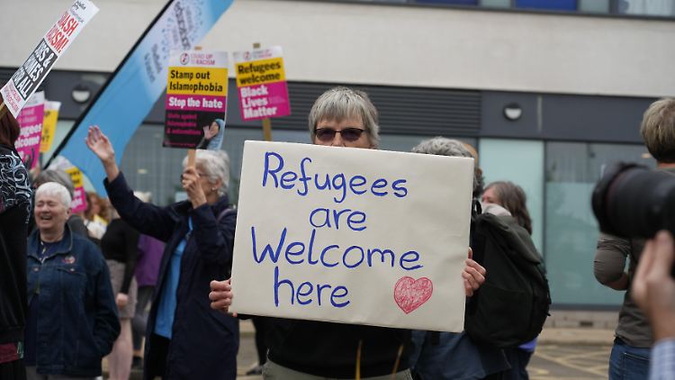 Trotz allem gibt es auch Menschen, die sich trauen, vor die Tür zu gehen und Schilder mit Aufschriften wie "Refugees welcome" hochzuhalten. Im südenglischen Küstenort sollen sich laut BBC Hunderte Demonstranten verschiedener politischer Lager gegenübergestanden haben. Die einen hätten "Weymouth and Portland welcome refugees" skandiert, die anderen Union-Jack-Fahnen geschwenkt und "Tommy Robinson" gerufen, den Namen des rechtsradikalen Ex-Chefs der Gruppierung English Defense League.